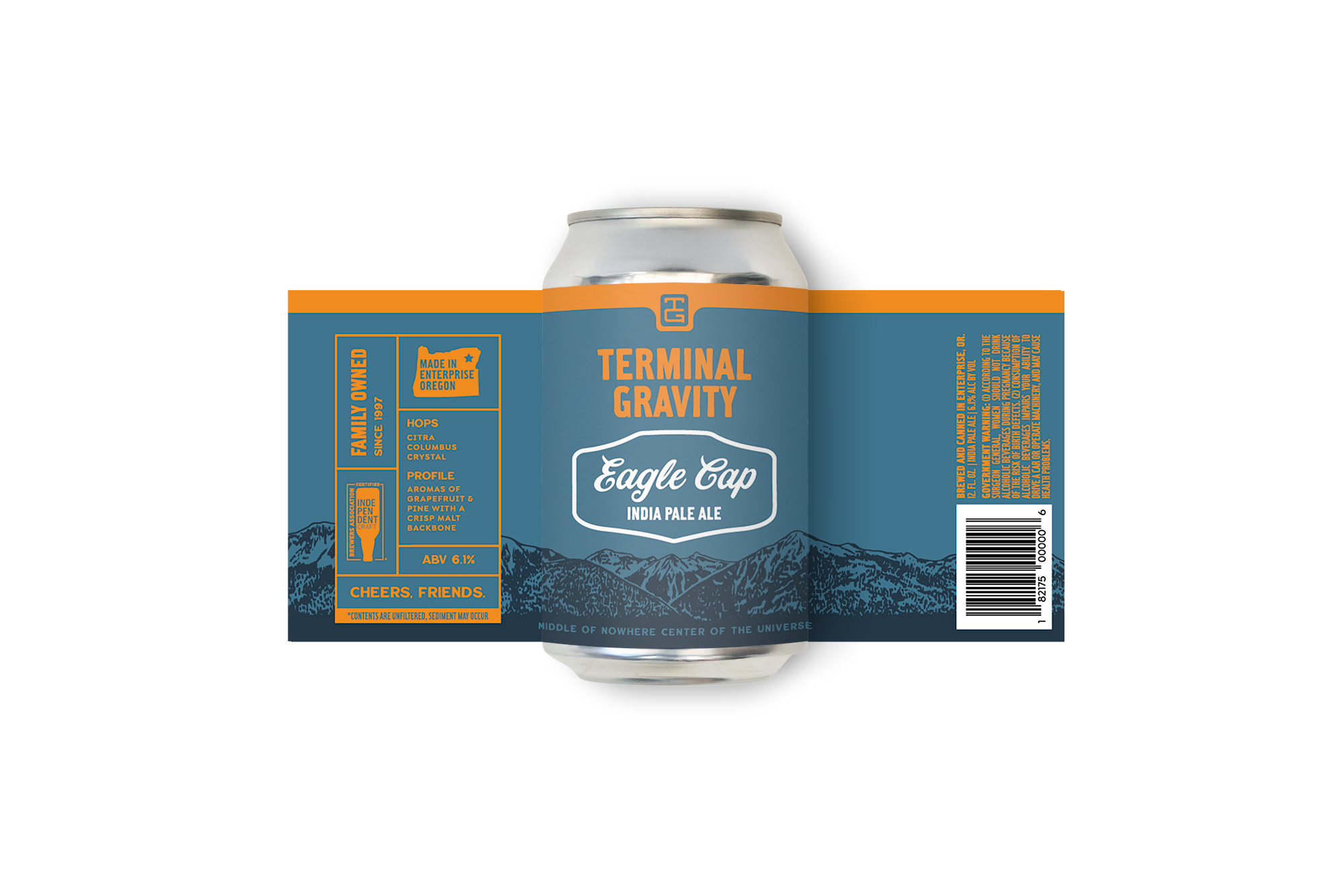 Terminal Gravity Brewing is located in the small town of Enterprise Oregon, at the foothills of the Wallowas. I helped them update their logo identity and the illustrations in their branding. I updated the mountains so they more accurately depicted the Wallowas and implemented the illustrations with a new logo lockup on their cans. Then carried the new look across menus, apparel design, and other marketing collateral.